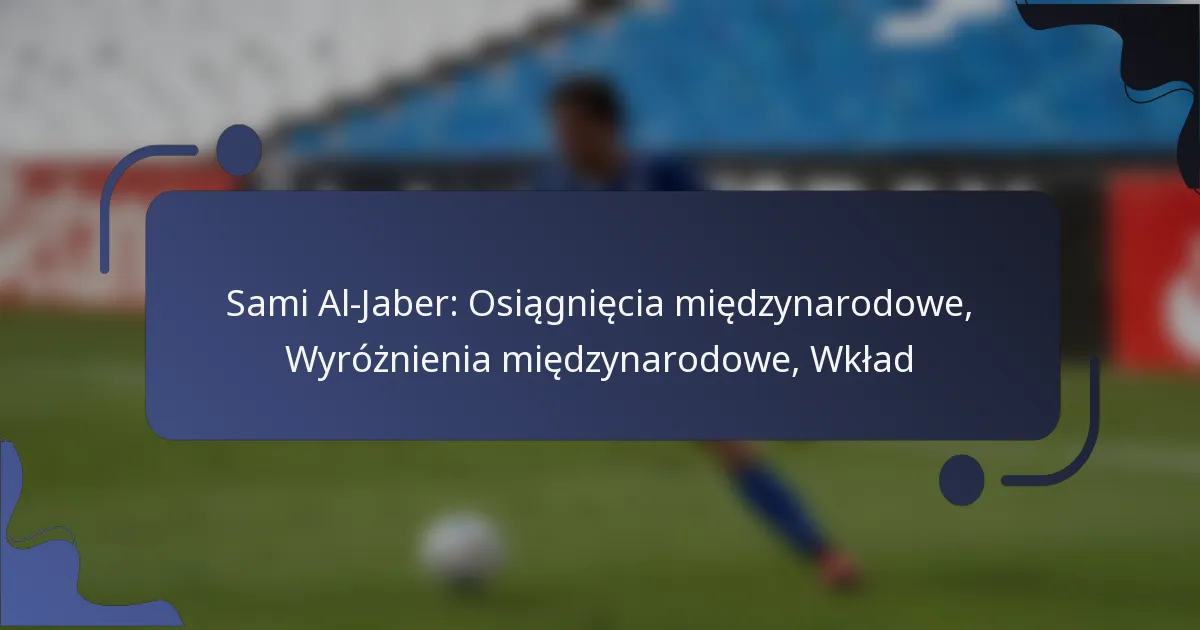 Sami Al-Jaber jest znany z istotnego wkładu w międzynarodową piłkę nożną, szczególnie w reprezentacji Arabii Saudyjskiej. Jego osiągnięcia obejmują wielokrotne uczestnictwo w Mistrzostwach Świata FIFA, znaczące sukcesy w Pucharze Azji AFC oraz trwały wpływ na ranking piłkarski Arabii Saudyjskiej.